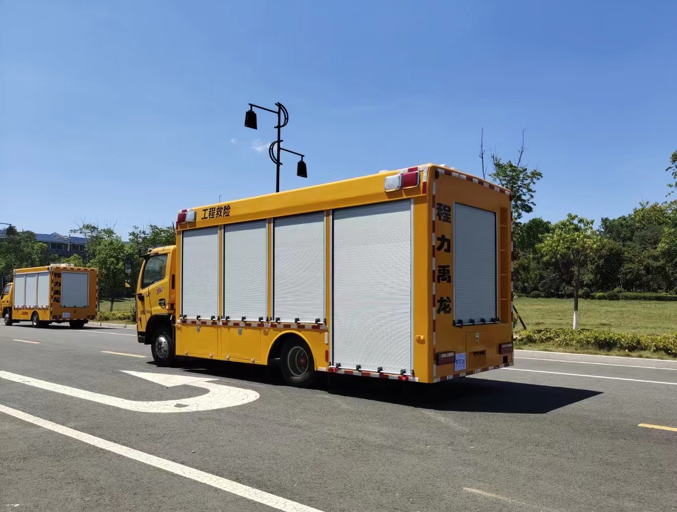 | 上裝配置 | 1、廂體外形尺寸根據(jù)實際公告標(biāo)準(zhǔn)。 廂體:具備運輸、防雨、防火、阻燃、防塵、防銹、降燥,隔震、長期抗震結(jié)構(gòu)。外部鋼材為優(yōu)質(zhì)冷軋鋼板,表面處理平整,內(nèi)襯優(yōu)質(zhì)冷軋鋼板折彎骨架,強度牢固,配重合理。 2、廂體一體化鋼體結(jié)構(gòu)設(shè)計, 頂部平坦。廂體采用骨架式夾層形式,外蒙皮采用厚1.5mm優(yōu)質(zhì)防銹處理的汽車專用冷軋鋼板,中間骨架采用防銹處理后的鋼管焊接,頂層、側(cè)圍內(nèi)、外層之間填充長時間使用對人體無害的防火阻燃環(huán)保吸音棉,外層鋪蓋一層阻燃金屬布,內(nèi)飾采用0.8mm厚網(wǎng)孔板。底板采用鋼結(jié)構(gòu)底框架,上表面鋪厚2mm花紋鋼板。 3、車輛廂體采用整體包覆式,廂體兩側(cè)下部設(shè)置裙邊式,全封閉式結(jié)構(gòu),頂部為圓弧型,尾部有轉(zhuǎn)向燈、剎車燈、尾燈、霧燈,箱體表面光滑平整。車廂靠駕駛室前部為休息室,休息室內(nèi)帶折疊坐椅及折疊桌,往后為機組室,機組室左、右側(cè)布置進排風(fēng)百窗,設(shè)置機組檢修門一個,下置登車踏步梯,車廂后端為后為卷簾門。右側(cè)排風(fēng)百葉窗下部為維修觀察艙門。左側(cè)下圍設(shè)置有工具箱及功能艙門等。右側(cè)下圍設(shè)置有汽車油箱艙、液壓控制艙等。 4、車廂尾部配置標(biāo)準(zhǔn)儲物貨架讓出水帶、加長電纜等附件存放有序、互不干涉,讓緊急排水搶險變得更加快捷、有效。 5、廂體噴漆:工程黃,與車頭同一顏色; 6、最終的門數(shù),形式,打開方式嚴(yán)格按照合同要求依據(jù)程力公告生產(chǎn); | ||