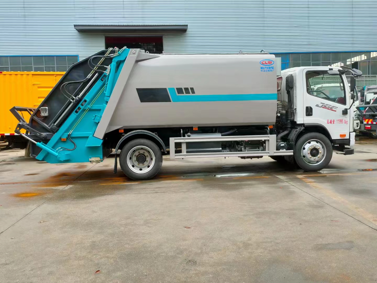 | 上裝配置 | 箱體容積11立方,采用邊四底四高強(qiáng)板制作,機(jī)器人自動(dòng)焊,電泳工藝涂裝,威森博樂多路閥,皖液油泵,填裝器外置滑板油缸結(jié)構(gòu),尾部翻轉(zhuǎn)結(jié)構(gòu)可掛120/240L垃圾桶。 | ||