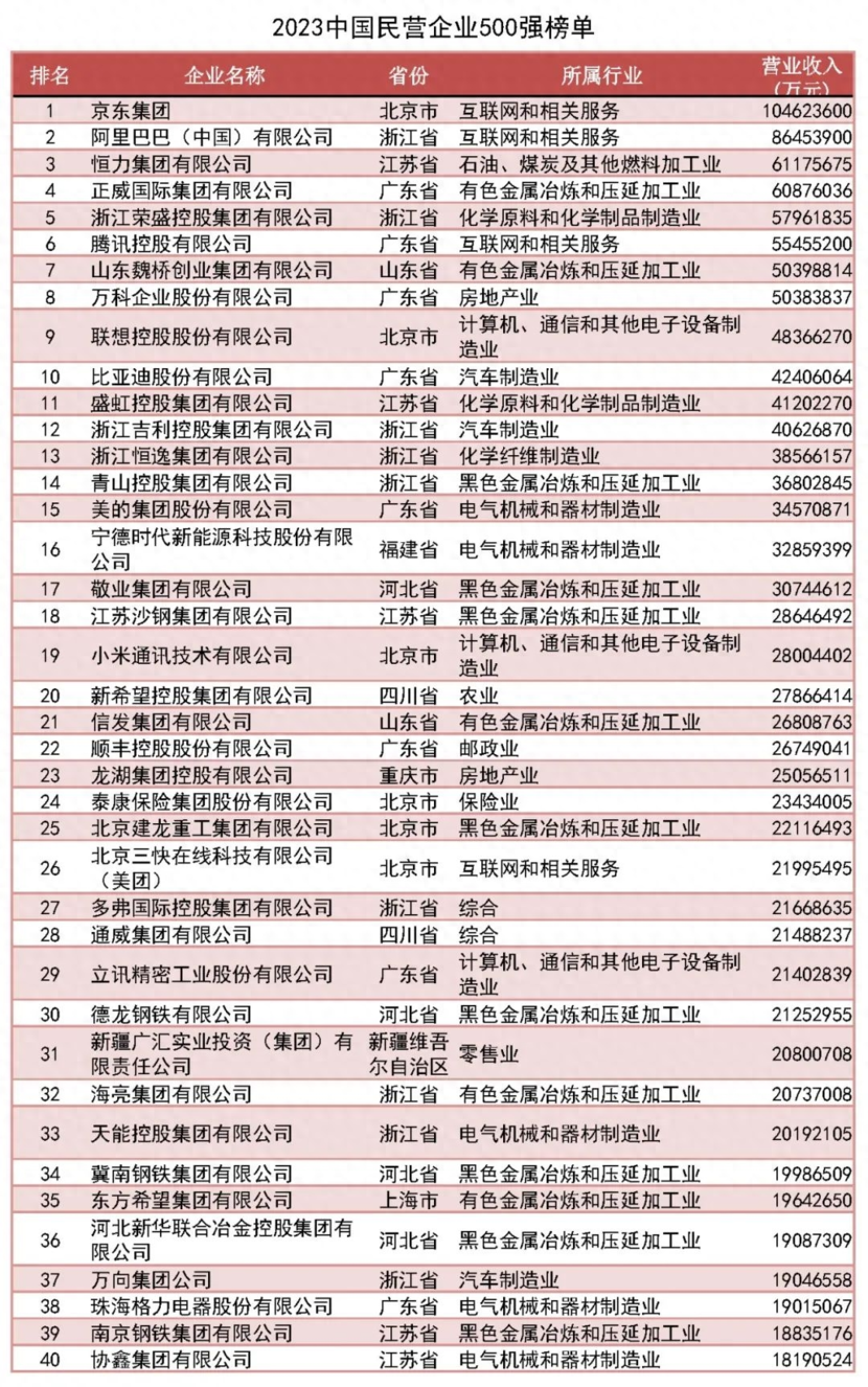近日,全國(guó)工商聯(lián)發(fā)布了《2023中國(guó)民營(yíng)企業(yè)500強(qiáng)榜單》,其中的京東、阿里、騰訊等公司我們肯定不陌生,但在汽車(chē)領(lǐng)域,除了長(zhǎng)城、吉利、比亞迪這些耳熟能詳?shù)钠髽I(yè),又有哪些容易被我們忽略的巨頭呢?今天我們就來(lái)一起看看吧。