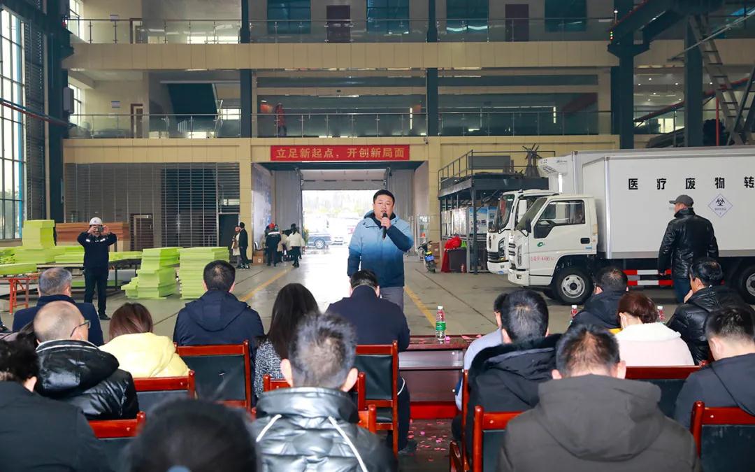 3月2日,程力特種冷鏈車專業(yè)廠花費(fèi)數(shù)百萬元引進(jìn)的自動(dòng)化廂式車板材切割復(fù)合生產(chǎn)線正式剪彩投入使用,集團(tuán)公司總經(jīng)理程阿羅出席剪彩儀式,并發(fā)表講話。
