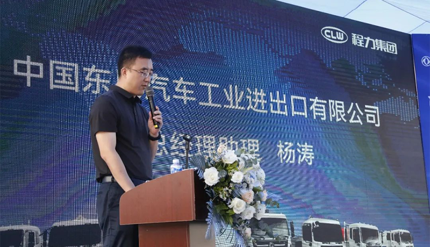 中國東風(fēng)汽車工業(yè)進出口有限公司總經(jīng)理助理楊濤在活動中,做了重要講話。他強調(diào),首先要感謝程力集團一直以來,與東風(fēng)公司全面戰(zhàn)略合作和大力支持,并向參加推薦會的來賓與銷售經(jīng)理表示誠摯的問候。