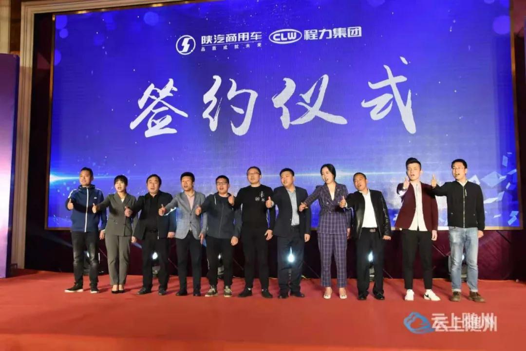 程力陜汽商用車(chē)底盤(pán)事業(yè)部負(fù)責(zé)人高波宣布了新產(chǎn)品價(jià)格和團(tuán)購(gòu)政策,與合作代表進(jìn)行了簽約儀式,并合影紀(jì)念。