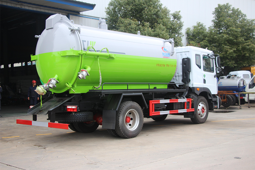 | 上裝配置 | 污罐:Q235武鋼6MM厚碳鋼板,標配采用億豐SK-12水循環(huán)泵。防溢閥,視糞管,配一根8米吸污管,罐體封頭一次壓鑄成型、罐體帶舉升,后蓋為液壓開啟。罐內(nèi)污物可通過后蓋直接傾倒,具有真空度高、噸位大、效率高、用途更廣泛的特點。 | ||