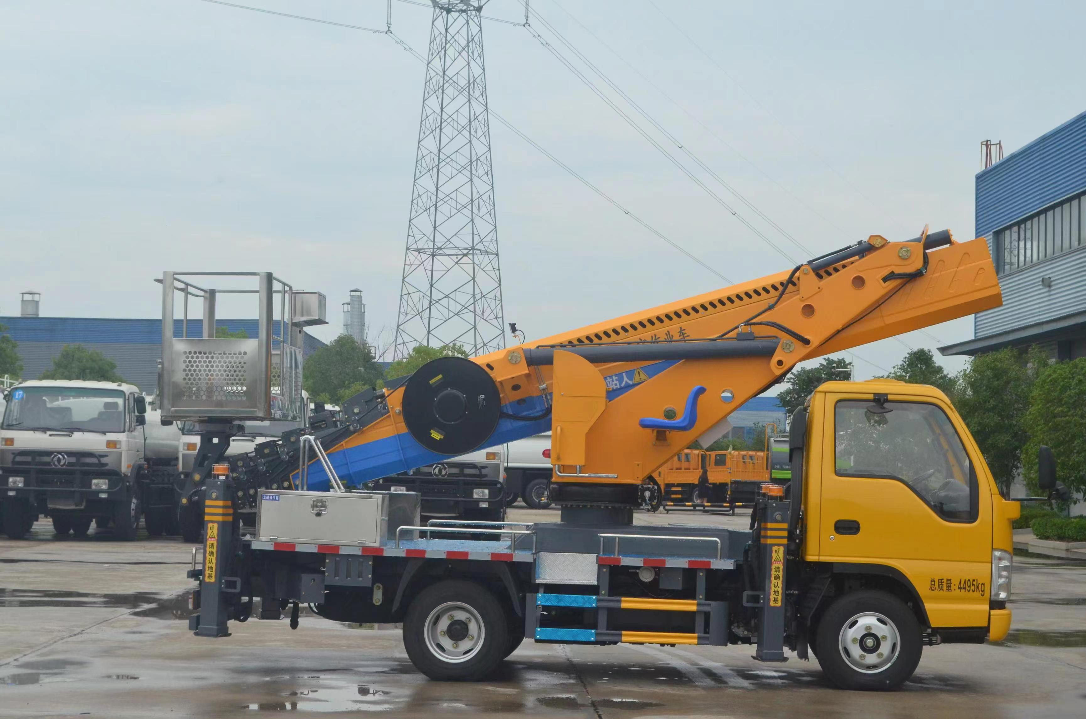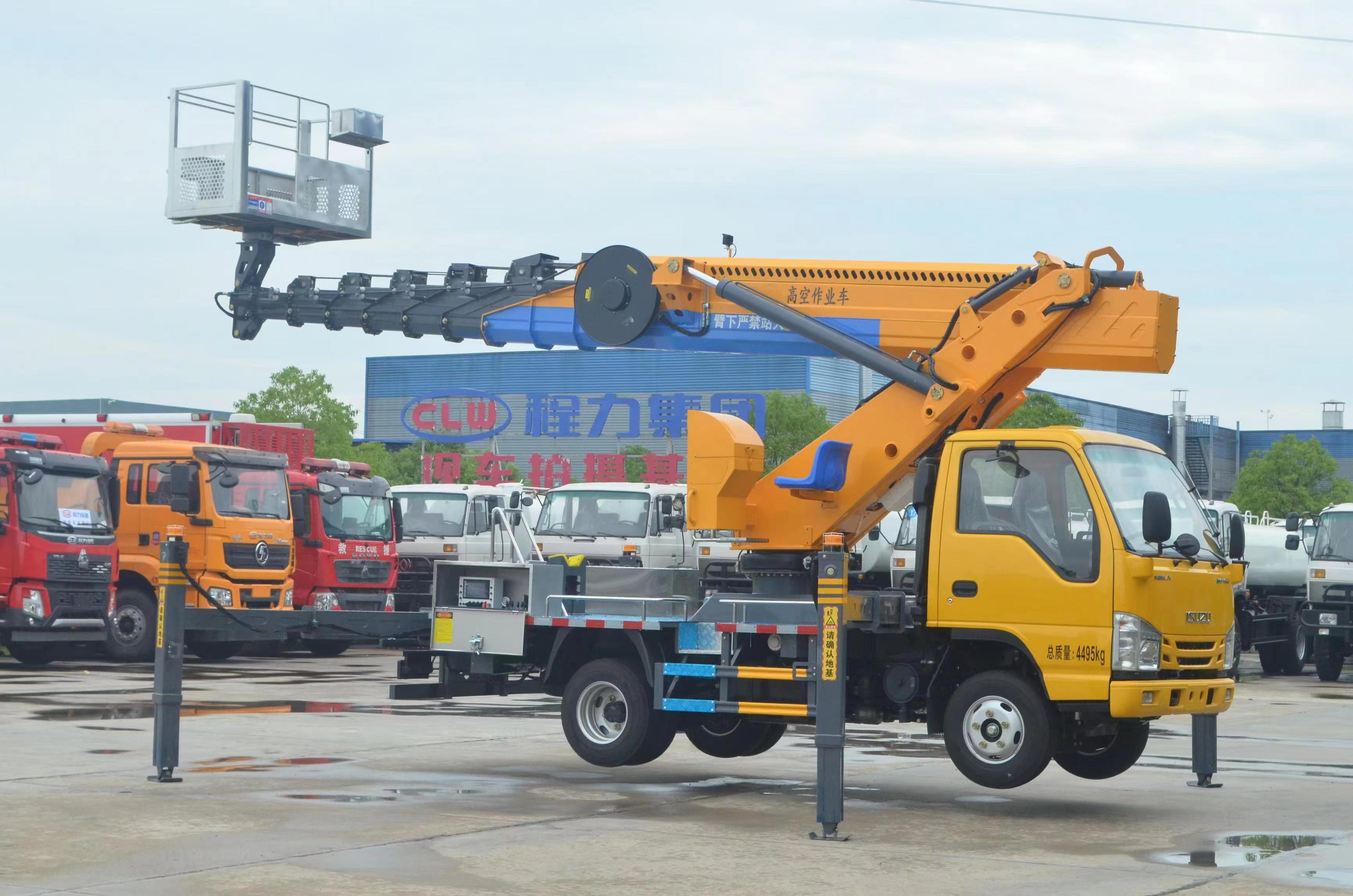| 上裝配置 | 不銹鋼圍欄及防滑走臺板,高強度不銹鋼工作平臺 (尺寸:1600X700X1000mm),七節(jié)十四邊形型工作臂,同步伸縮,回轉(zhuǎn)裝置 360 度連續(xù)回轉(zhuǎn),前 V 后 V 型支腿,單獨可調(diào)(控制),電控操作,另配有手動應(yīng)急操作 控制系統(tǒng),CAN 總線控制系統(tǒng),配有無線遙控器、實現(xiàn) 無級調(diào)速,靜液自動調(diào)平; CL5045JGK6ADS 型高空作業(yè)車基本功能安全配置:作業(yè)車可以實現(xiàn)平臺載荷 200KG,最大作業(yè)高度 33 米,最大作業(yè)幅度 15 米。 上下車自動互鎖裝置,用于上下車互鎖,防止誤操作發(fā)生危險,手動應(yīng)急泵,當(dāng)發(fā)動機及主泵發(fā)生故障時,可通過應(yīng)急系統(tǒng)將工作人員送回到地面及整車收回至行車狀態(tài),工作平臺緊急停止 裝置,緊急動限制工作幅度,當(dāng)工作幅度達到規(guī)定值時,自動限制危險方向工作;當(dāng)出現(xiàn)支腿支地不實時(軟腿),舉升臂架將限制危險方向工作。(選配) 夜間安全警示裝置,在車輛上有工程頻閃燈,LED 照明燈發(fā)動機點火熄火,控制器可對發(fā)動機進行點火,熄火控制;被限制工作時,可通過“強制”功能拓展工作; | ||